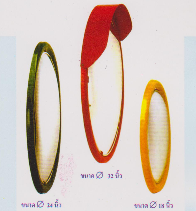 ผลิตจากกระจกแท้ที่ให้ความสะท้อนระยะในการมองเห็นได้ใกล้เคียงกับสัดส่วนระยะจริงสำหรับประมาณระยะทาง ของยานพาหนะที่กำลังแล่นสวนมาได้อย่างถูกต้องเพื่อป้องกันการเฉี่ยวชน หรืออุบัติเหตุต่างๆ ในทางที่คับแคบ และตาทางแยกที่เป็นมุมอับ ผิวหน้าของกระจกเคลือบสารปรอทชนิดพิเศษป้องกันการเลือนลาง ใช้งานได้ยาวนาน มีเส้นผ่าศูนย์กลาง 18" , 24" , 32" ให้เลือกตามความเหมาะสม