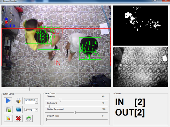 โปรแกรมเพื่อใช้ในการนับคนเข้าออกโดยใช้วิธีการหาความแตกต่างของภาพ และกระบวนการทางการประมวลผลภาพ เพื่อช่วยให้ผลการนับถูกต้องแม่นยำ โดยการติดตั้งนั้นจะติดกล้องไว้ตรงทางเข้าของอาคาร หรือทางเข้างานแสดงสินค้า โดยข้อมูลการนับจะเก็บไว้ในฐานข้อมูล เพื่อให้ผู้ใช้สามารถดูข้อมูลย้อนหลังได้ เพื่อนำข้อมูลจากการนับไปวิเคราะห์ในด้านการตลาด หรือด้านอื่นๆ
