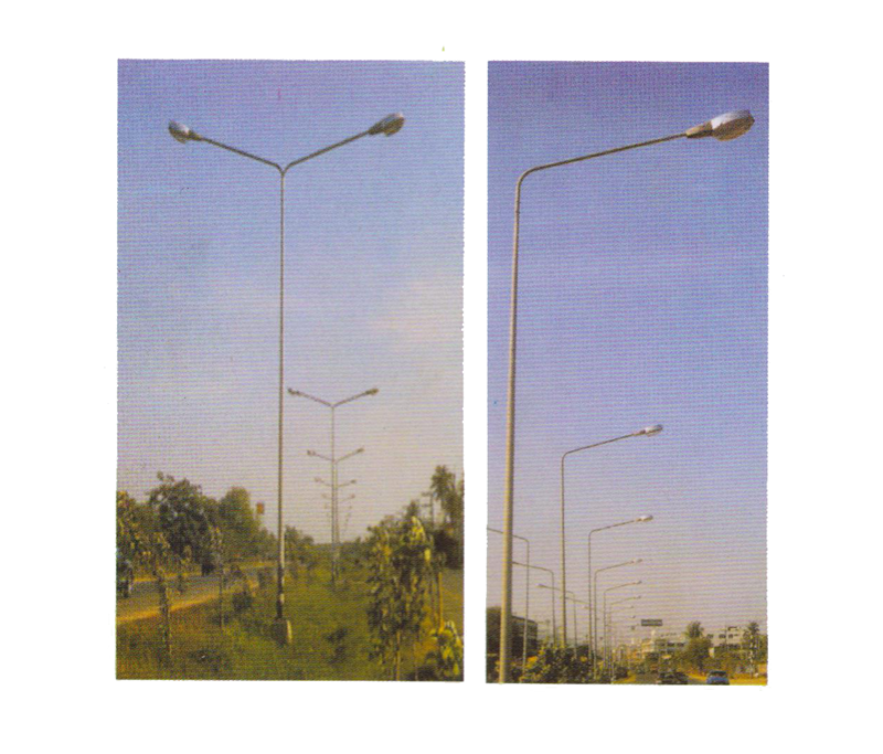 เสาไฟฟ้าทุกต้นทำด้วยแผ่นเหล็กม้วนร้อน หนา 3.5-4.5 มม. มีจุดคาดมากกว่า 25 กก/ตร.ม. และมีความต้าน- ทานแรงดึง มากกว่า 41/กก.ตร.มม.เสาทุกต้นไม่มีรอยต่อ และผลิตตามมาตรฐานอังกฤษ บี. เอส. 1840/1960กิ่งโคมแบบกิ่งเดี่ยว กิ่งคู่ หรือหลายกิ่ง ประกอบเข้ากับโคมไฟแบบต่างๆ ของผู้ผลิตได้ เสาทุกต้นมีประตูที่ปิดไว้ อย่างปลอดภัยซึ่งเปิดได้ด้วยกุญแจ พิเศษเท่านั้น โดยภายในมีแผ่นสำหรับติดคาร์ทริดจ์ฟิวส์ จัดให้มาพร้อมเสา เสาทั้งหมดมีแผ่นฐานเสาที่ได้ขนาดมาตรฐาน เพื่อ ตั้งบนฐานรองรับ ที่เหมาะสม เสาทั้งหมดผ่านการชุบสังกะสี แบบจุ่มร้อน (Hot Dip Galvanizing) ผลิตภัณฑ์ของทางบริษัทฯ ได้รับการรับประกัน ด้วยการควบคุมคุณภาพในการ ผลิตที่เข้มงวด ทั้งนี้เพื่อให้ได้มาซึ่งความพอใจของลูกค้าเป็นสำคัญ