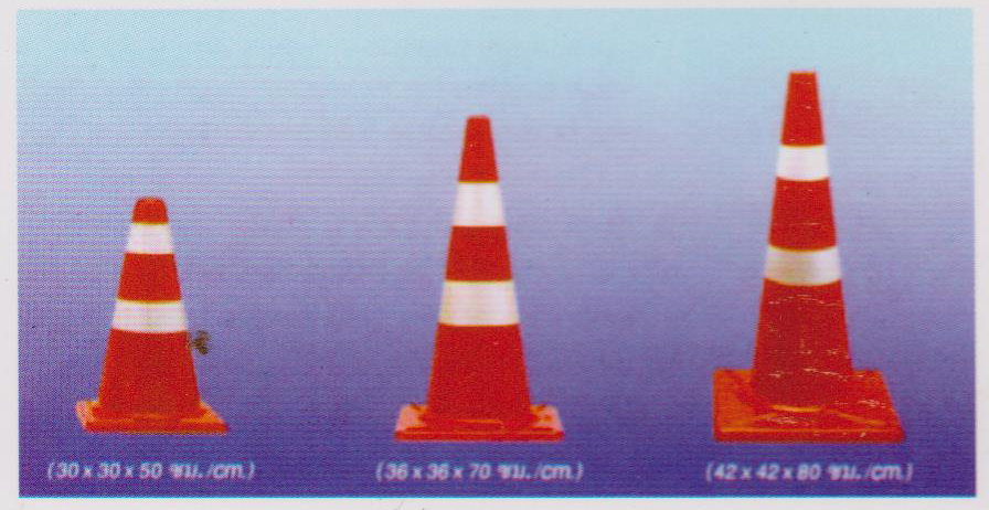เป็นกรวยยางที่ผลิตขึ้นตามรูปแบบที่ได้มาตรฐานสากล เพื่อใช้ยกระดับมาตรฐาน การก่อสร้างการซ่อมแซม การบำรุงและการเปลี่ยนช่องทางจราจร ช่วยเสริมสร้างความปลอดภัยให้กับผู้ขับขี่ยานพาหนะ สามารถมองเห็นได้ชัดเจน ทั้งในเวลากลางวันและกลางคืนโดยมีให้เลือก 3 ขนาด